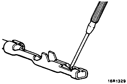 3. Press contact point of male terminal down by holding a screw driver [1.4 mm (0.06 in) width] in a manner as shown in the figure.