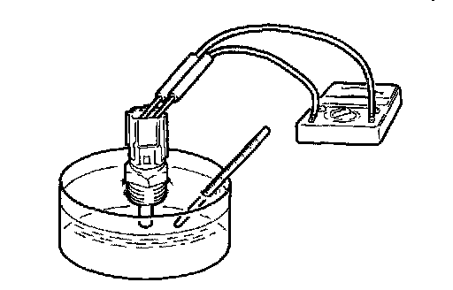 2. With the temperature sensing portion of engine coolant temperature sensor immersed in hot water, check the resistance.