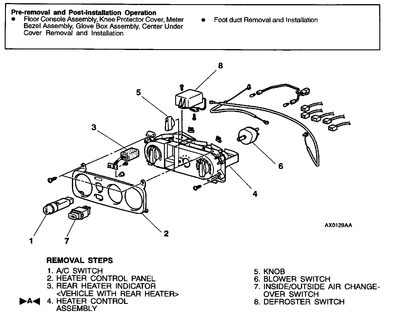 HEATER CONTROL ASSEMBLY AND A/C SWITCH REMOVAL AND INSTALLATION