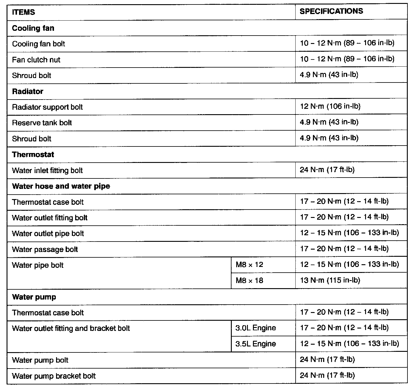 Torque Specifications