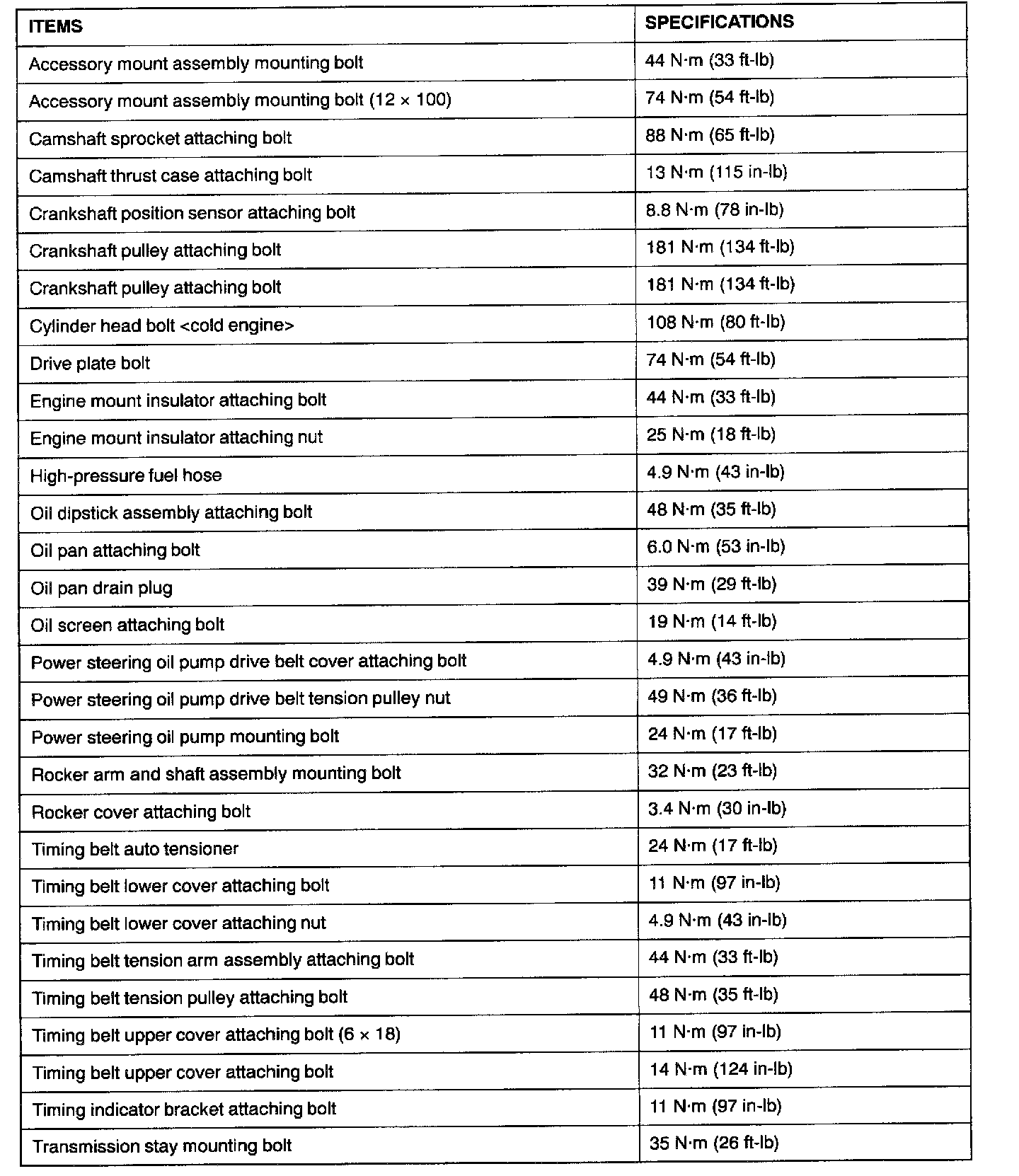 FASTENER TIGHTENING SPECIFICATIONS