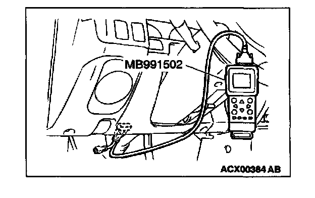 CAUTION: To prevent damage to scan tool MB991502, always turn the ignition switch to the "LOCK" (OFF) position before connecting or disconnecting scan tool MB991502.