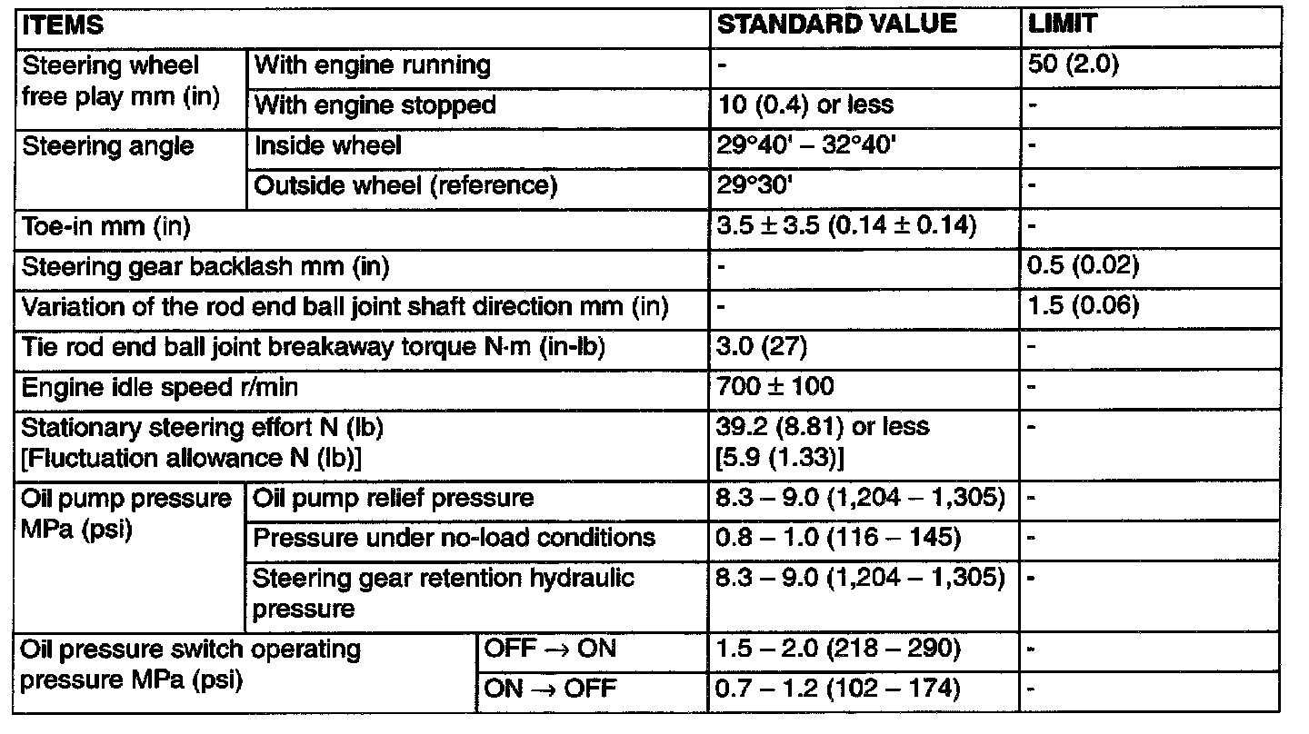 SERVICE SPECIFICATIONS