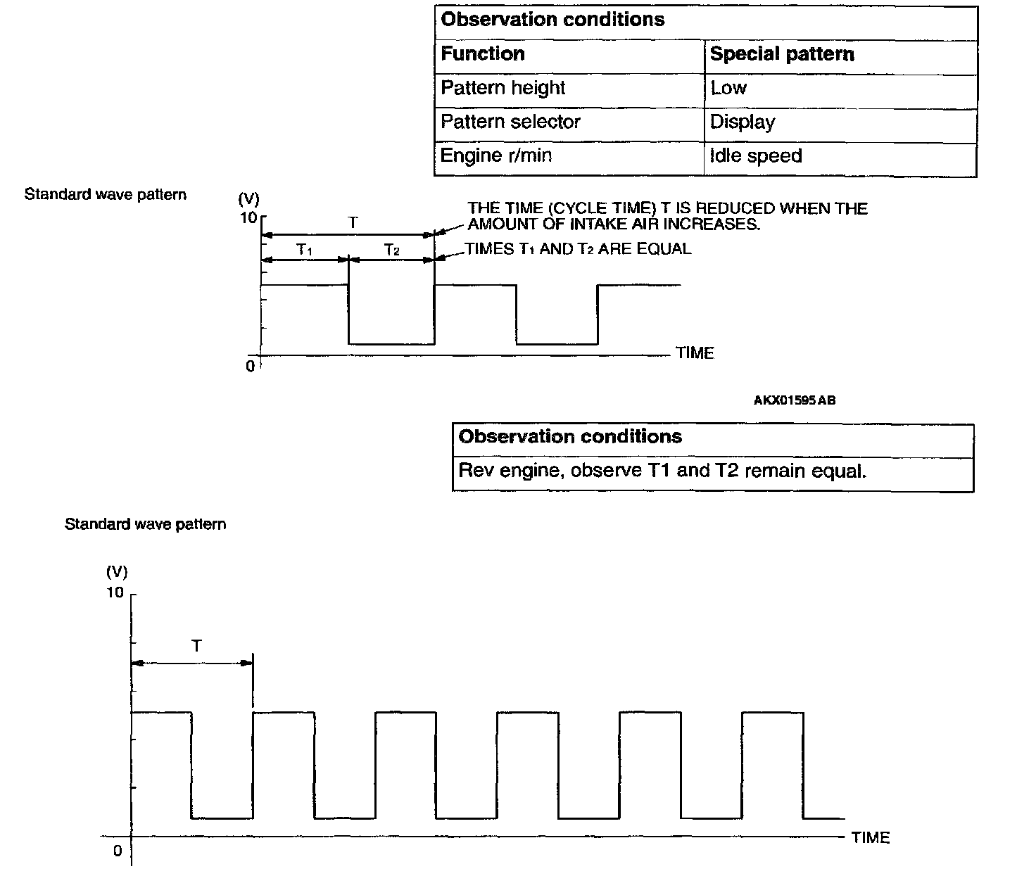 1. Check that cycle time T becomes shorter and the frequency increases when the engine speed is increased.