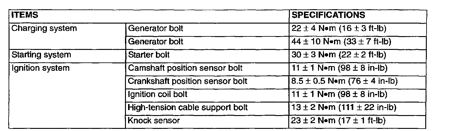 Fastener Tightening Specifications: