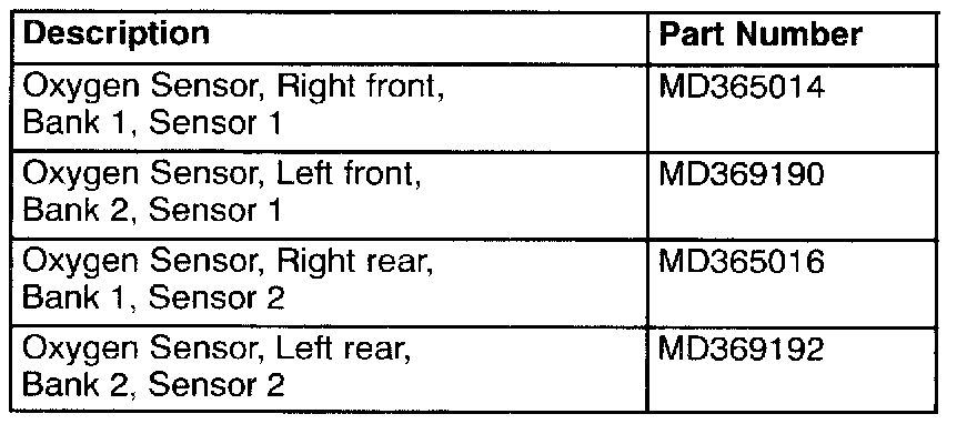 For only 2001 Montero vehicles, replace the oxygen sensors after reprogramming the PCM. (See Step 19 in this bulletin.)