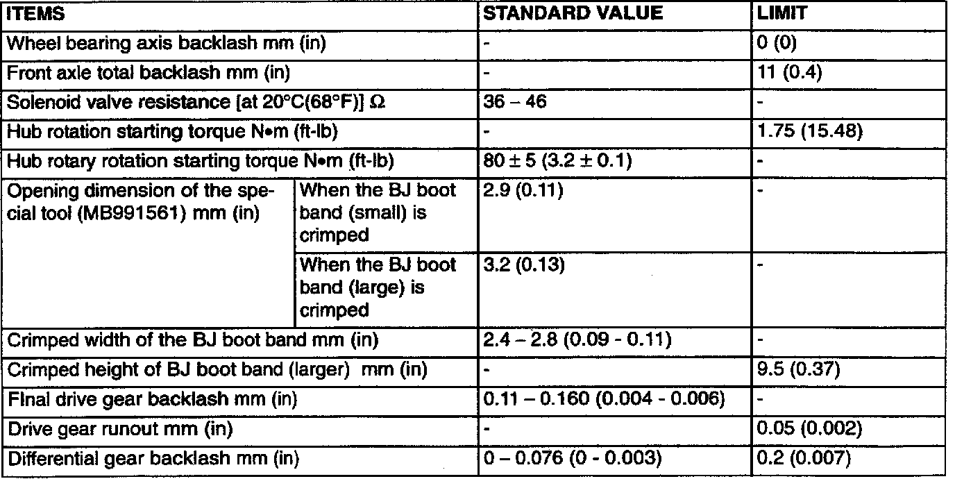 SERVICE SPECIFICATIONS