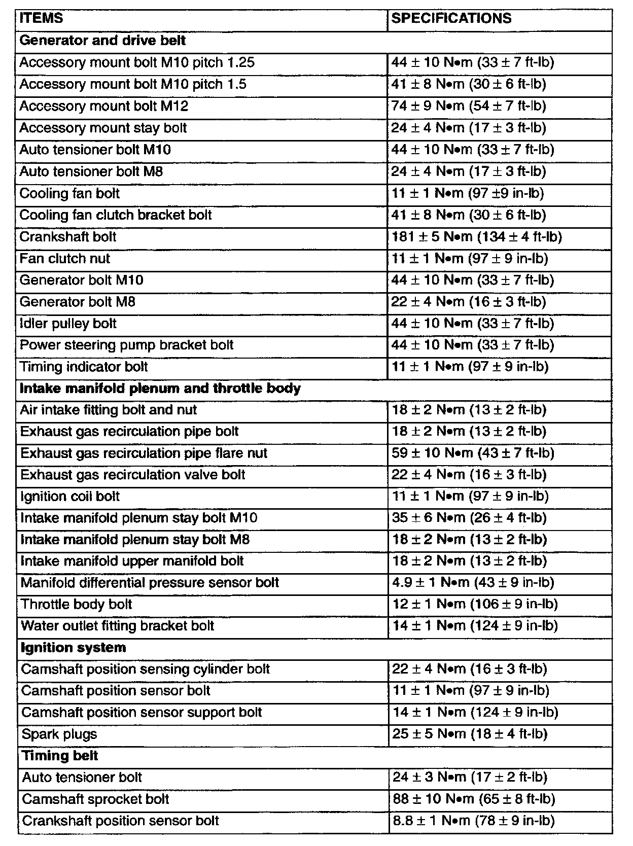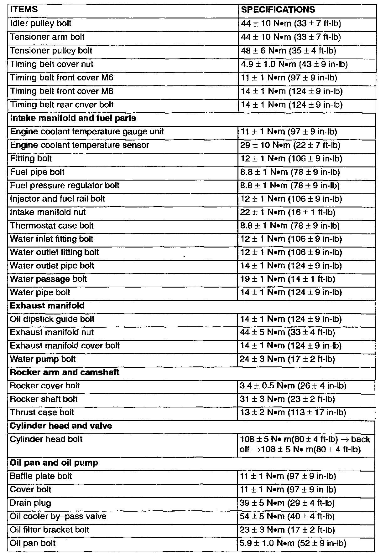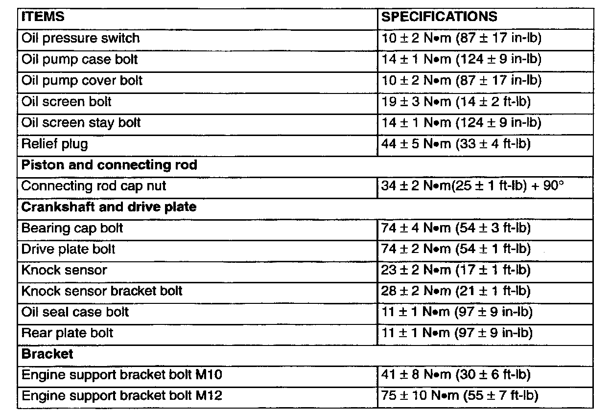FASTENER TIGHTENING SPECIFICATIONS