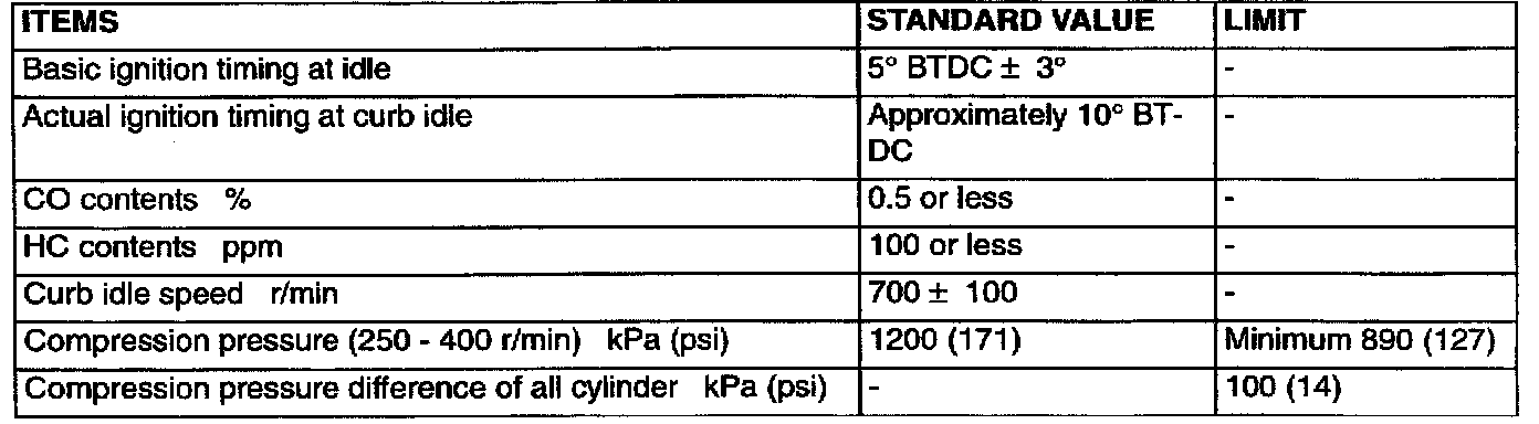 Engine-On Vehicle Service Specifications