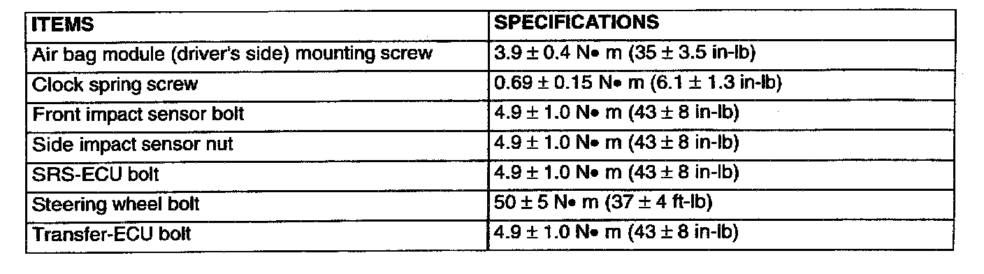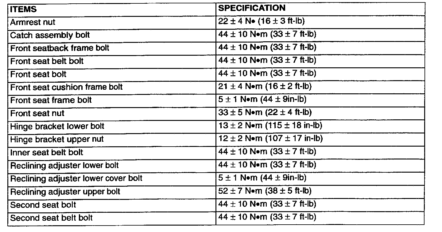 Fastener Tightening Specifications: