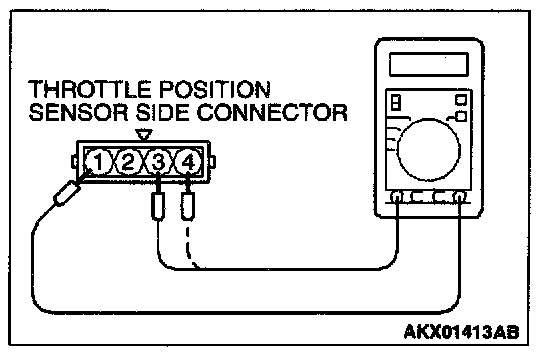 3. Measure resistance between the throttle position sensor side connector terminal 1 and terminal 3.