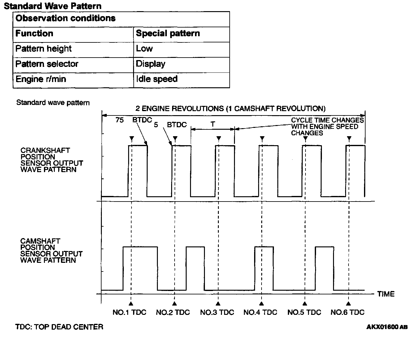 1. Check that cycle time T becomes shorter when the engine speed increased.