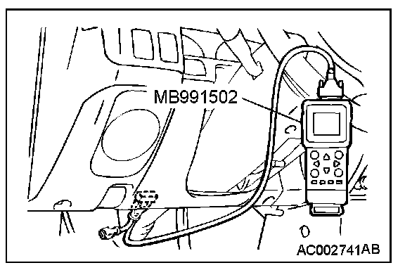 CAUTION: To prevent damage to scan tool MB991502, always turn the ignition switch to "LOCK" (OFF) position before connecting or disconnecting scan tool MB991502.