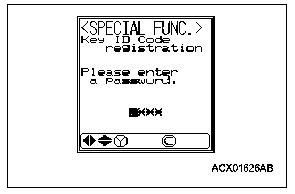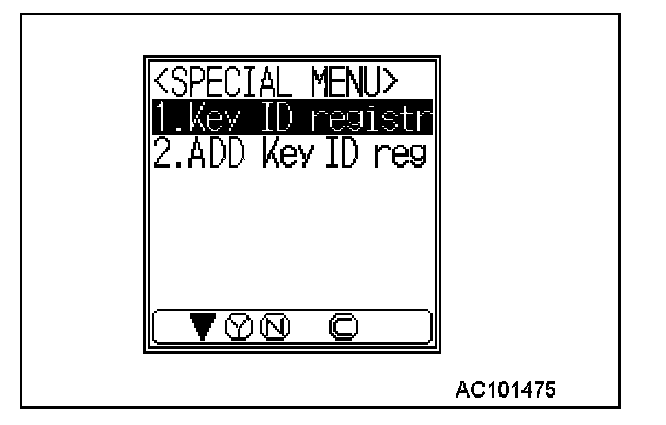 NOTE: Using the key ID register function will cause all key IDs that have been previously registered in the immobilizer-ECU to be erased. All keys need to be registered. Those which have been registered before should be on hand before using this function.