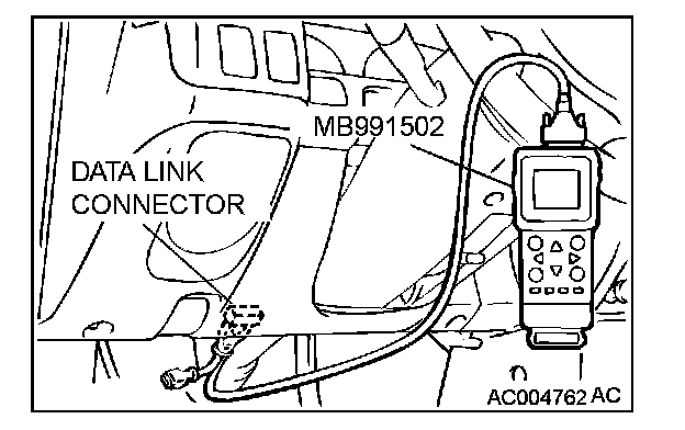 CAUTION: To prevent damage to scan tool MB991502, always turn the ignition switch to the "LOCK" (OFF) position before connecting or disconnecting scan tool MB991502.