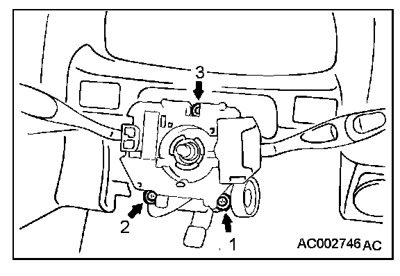 Tighten the column switch assembly mounting screws to the specified torque in the order of 1, 2 and 3.