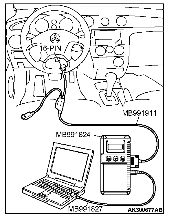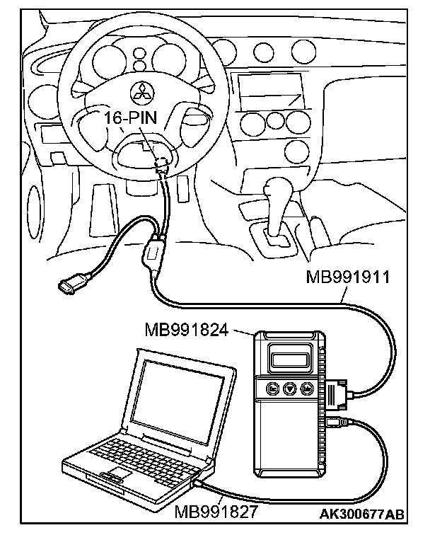 1. Connect scan tool MB991958 to the 16-pin data link connector.