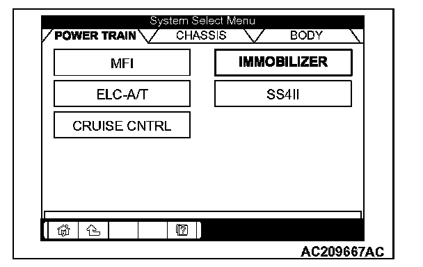 5. Choose "IMMOBILIZER" from the "POWER TRAIN" tab.