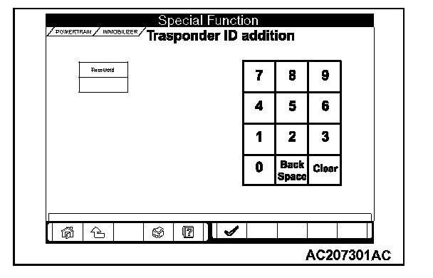 5. Enter the vehicles password (secret code) on the "Transponder ID addition" screen, and then click the check mark icon.
