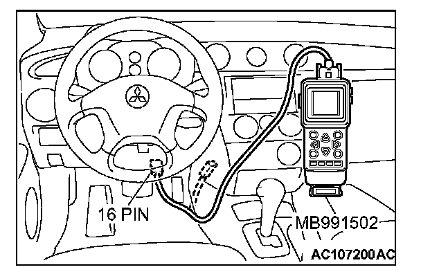 CAUTION: To prevent damage to scan tool MB991502, always turn the ignition switch to "LOCK" (OFF) position before connecting or disconnecting scan tool MB991502.