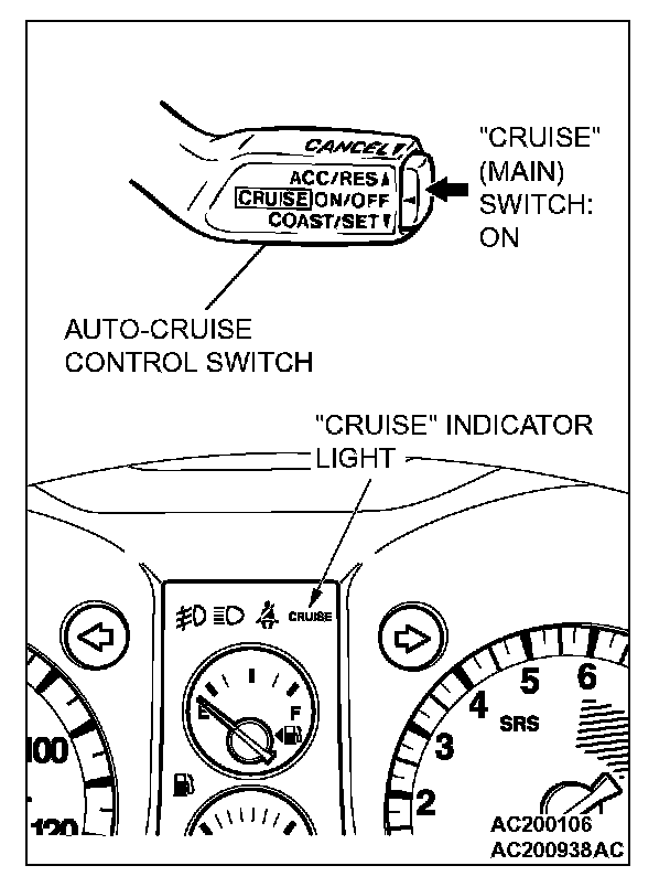 AUTO-CRUISE CONTROL MAIN SWITCH CHECK1. Turn the ignition switch to the "ON" position.