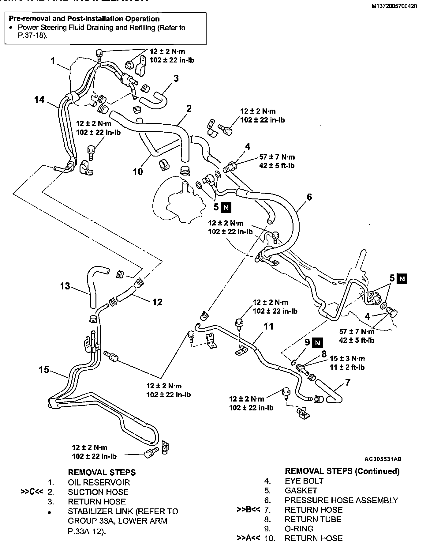 POWER STEERING HOSES REPLACEMENT W/ RELATED COMPONENTS