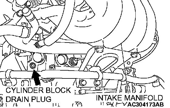 2. Drain the water in the water jacket by unplugging the drain plug of the cylinder block.