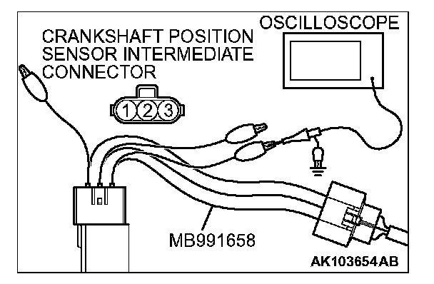3. Disconnect the crankshaft position sensor intermediate connector, and connect the test harness special tool (MB991658) between the separated connector.