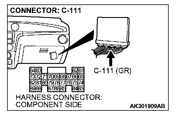 1. Do not disconnect the connector C-111 and measure at the harness side.