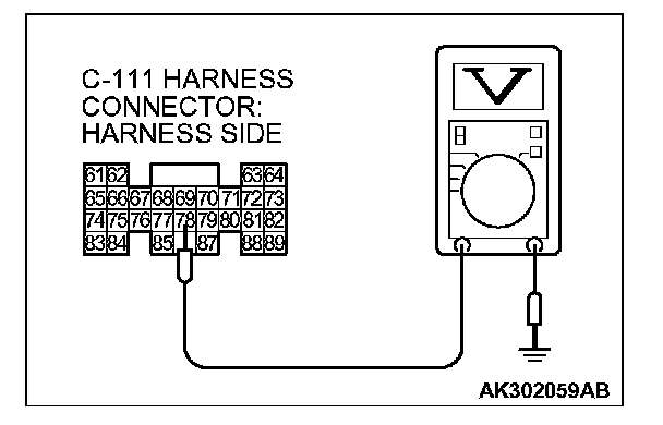 STEP 2. Measure the output voltage at PCM connector C-111 by backprobing.