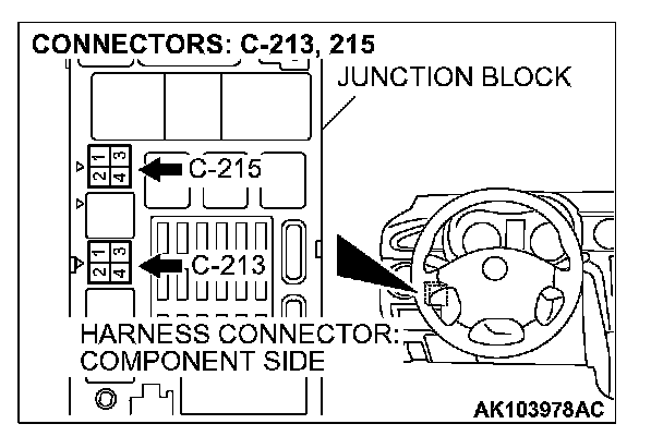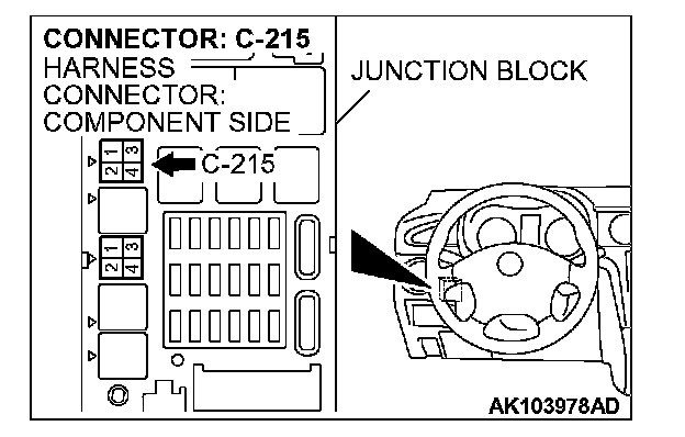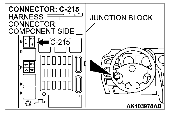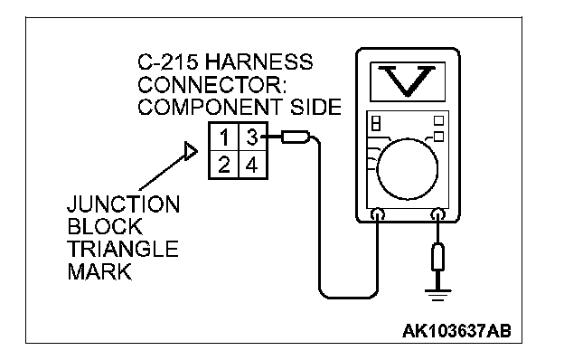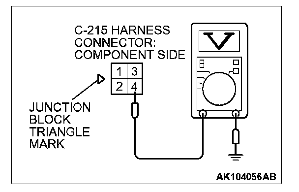 STEP 4. Measure the power supply voltage at fuel pump relay 1 harness side connector C-215.