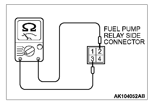 2. Check for continuity between the each fuel pump relay terminals No. 2 and No. 3.