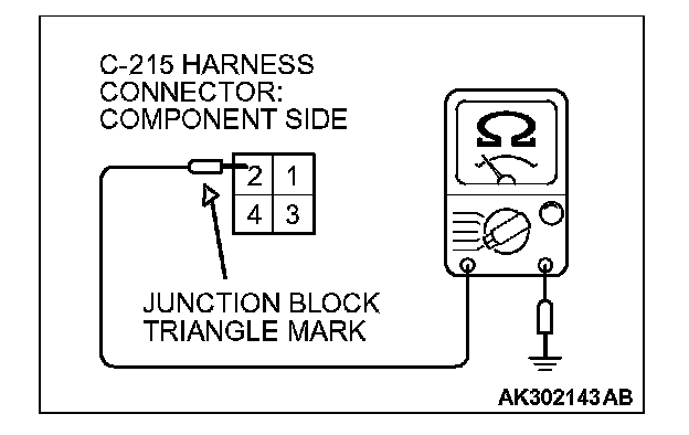 STEP 6. Check the continuity at fuel pump relay 1 harness side connector C-215.