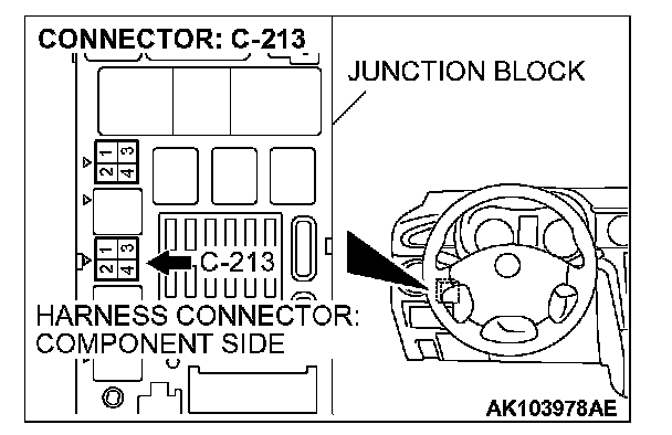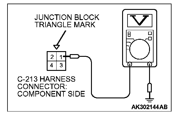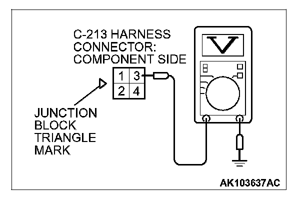 STEP 7. Measure the power supply voltage at fuel pump relay 2 harness side connector C-213.