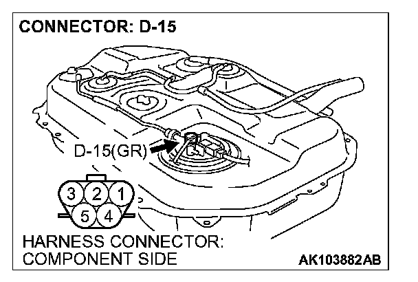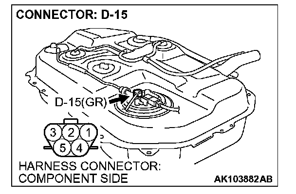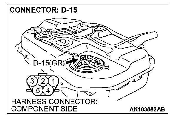 STEP 11. Check the continuity at fuel pump harness side connector D-15.