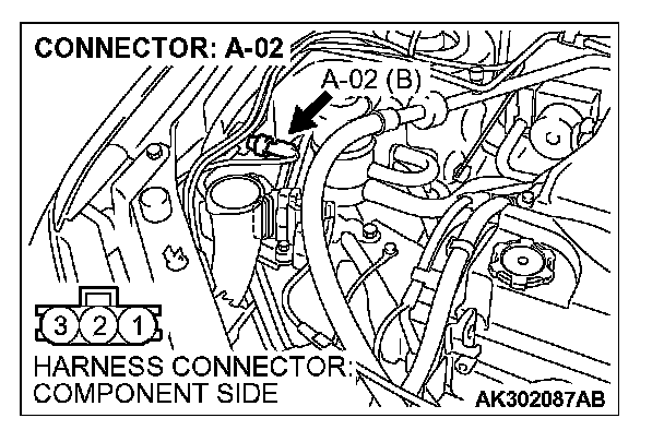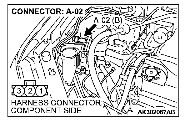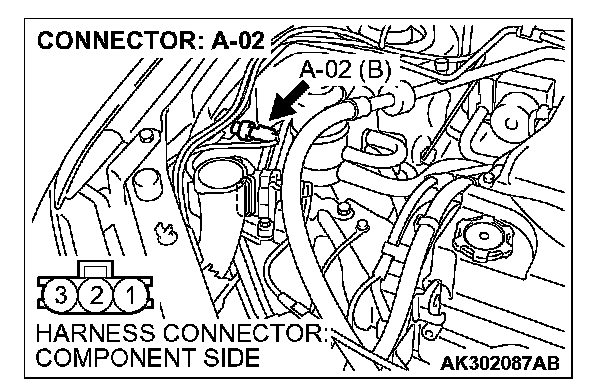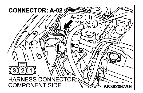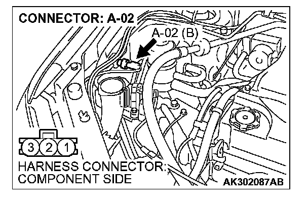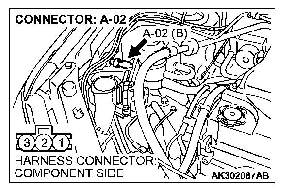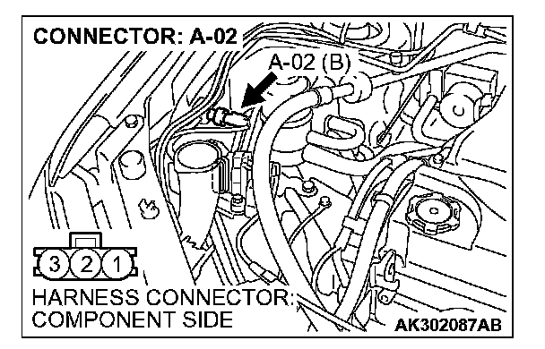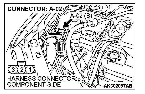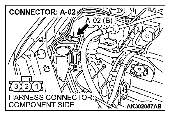 STEP 7. Measure the ground voltage at A/C pressure sensor connector A-02 by backprobing.