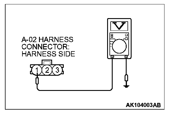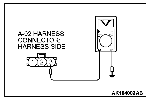 STEP 2. Measure the sensor supply voltage at A/C pressure sensor connector A-02 by backprobing.