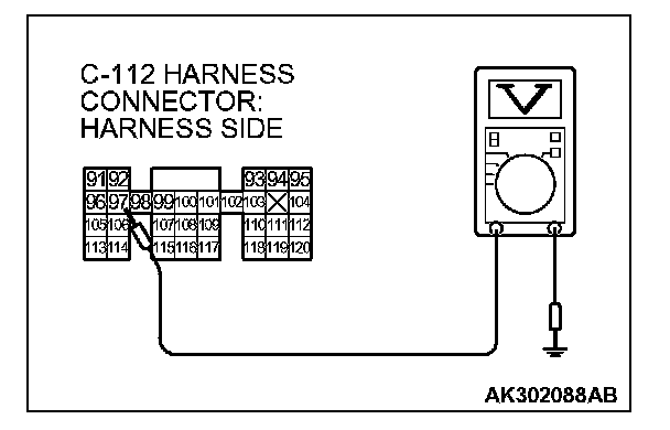 STEP 3. Measure the sensor supply voltage at PCM connector C-112 by backprobing.