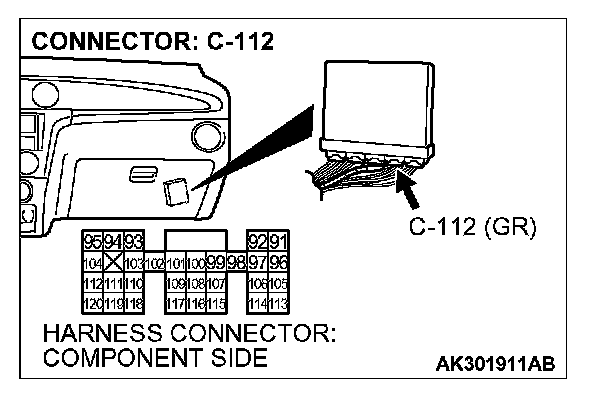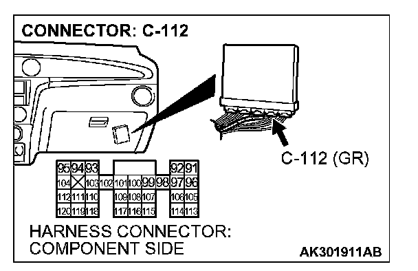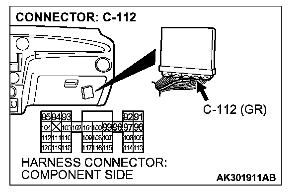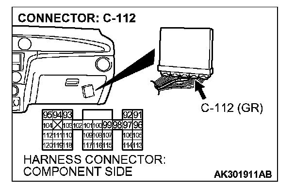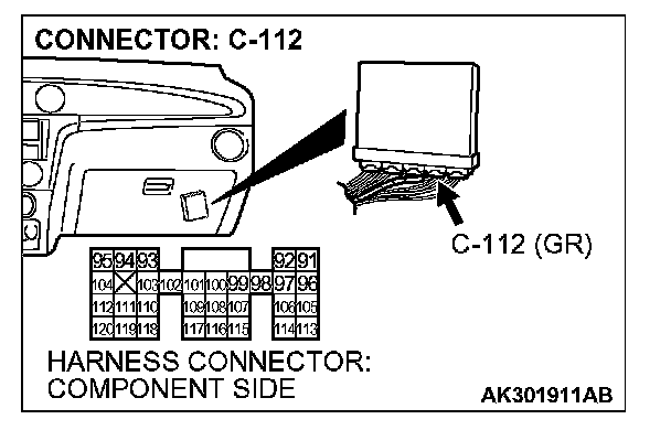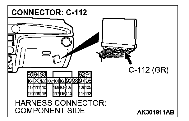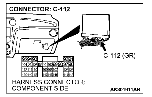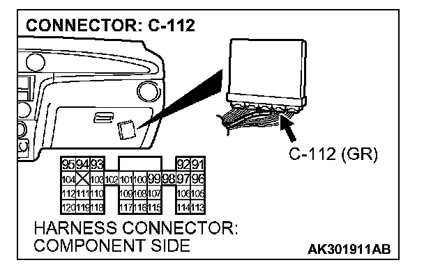 STEP 11. Check for short circuit to ground and harness damage between A/C pressure sensor connector A-02 (terminal No. 2) and PCM connector C-112 (terminal No. 118).