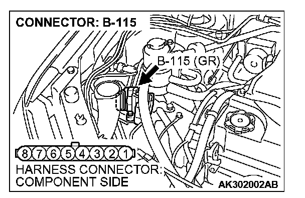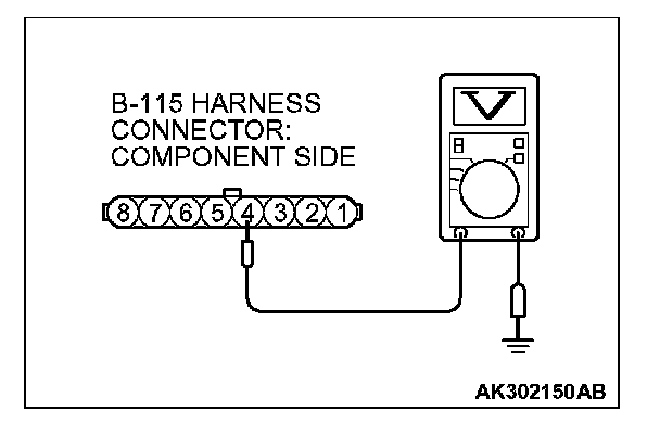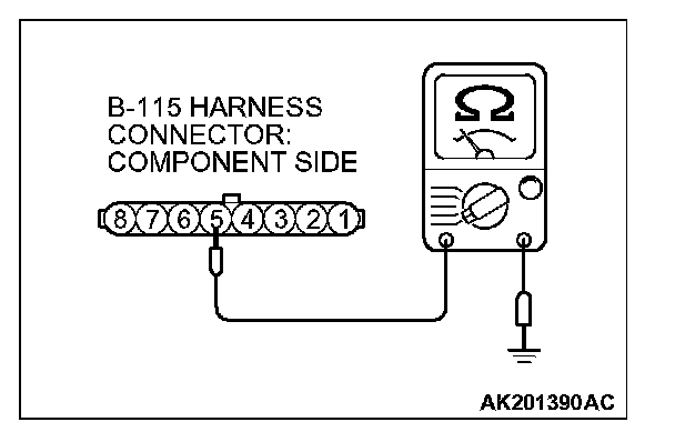 1. Disconnect the connector B-115 and measure at the harness side.