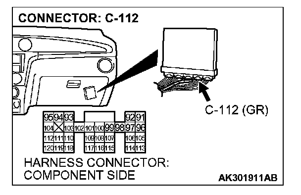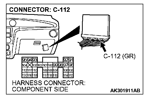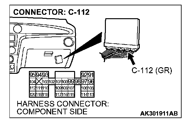 STEP 7. Check harness connector C-112 at PCM for damage.
