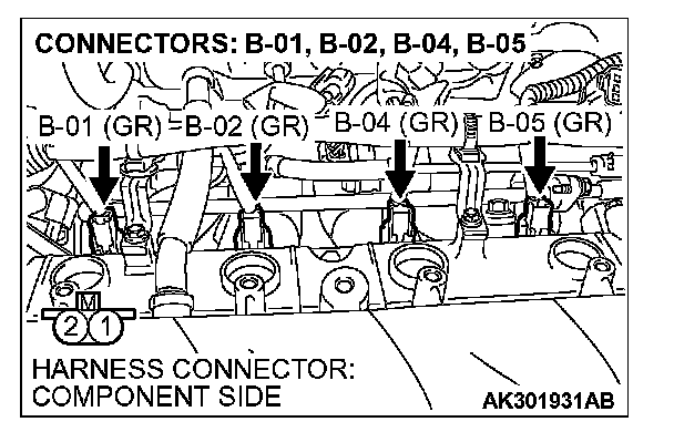 1. Disconnect the injector connector B-01, B-02, B-04, B-05.