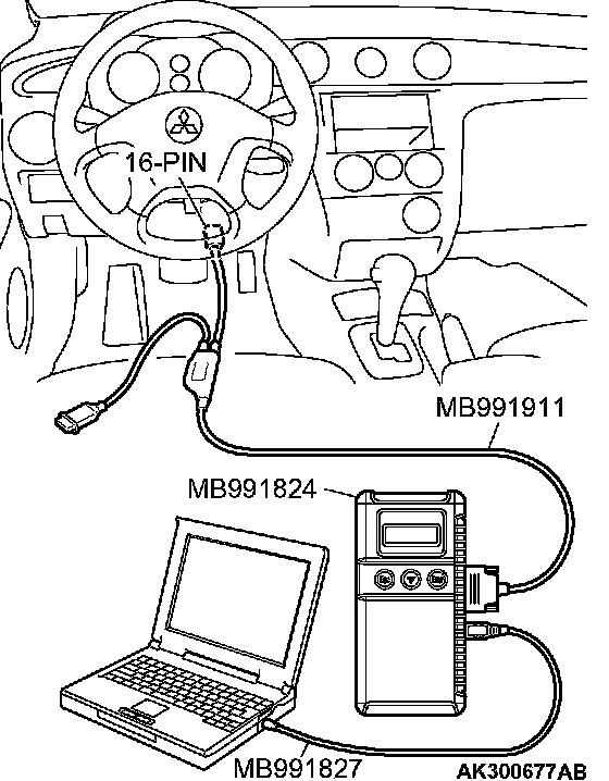 CAUTION: To prevent damage to scan tool MB991958, always turn the ignition switch to the "LOCK" (OFF) position before connecting or disconnecting scan tool MB991958.
