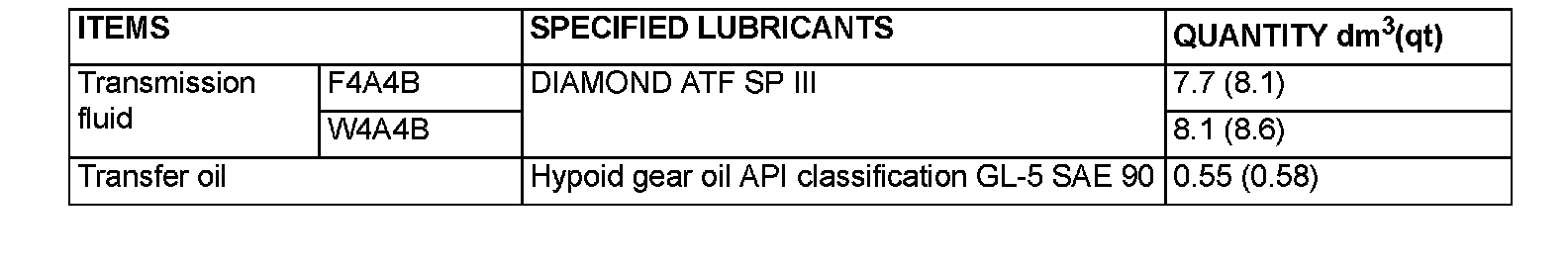 Fluid Type Specifications