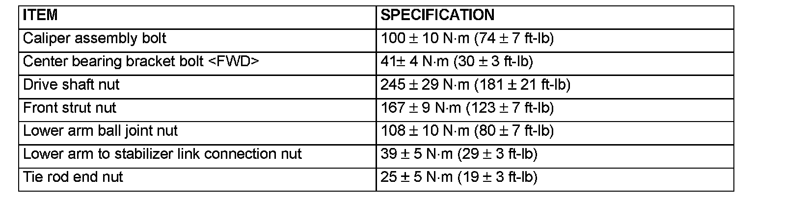 FASTENER TIGHTENING SPECIFICATIONS