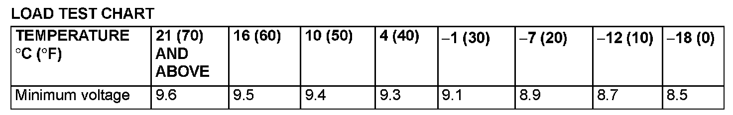 4. Compare the measured value with the minimum voltage (See LOAD TEST CHART).
