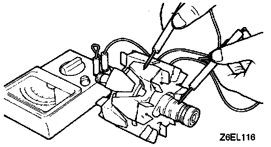 2. Check for continuity between the slip ring and the core. If there is continuity, replace the rotor.