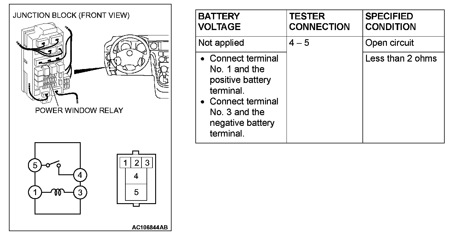 Power Window Relay: Testing and Inspection