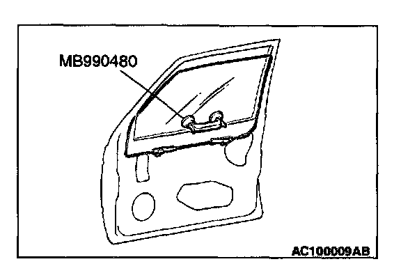 CAUTION: If tinting film is adhered to the door window glass, attach special tool MB990480 to the outside of the glass to prevent the film from peeling off.