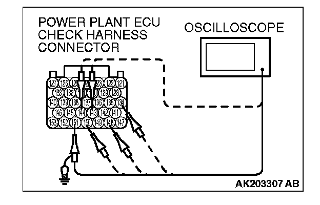 2. Connect the oscilloscope probe to each check harness connector terminal to analyze each cylinder: